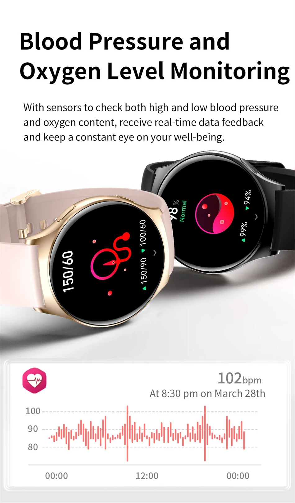 | Metriken gemessen: | Herzfrequenzmesser, Blut-Sauerstoff-Monitor, Schlaf-Monitor, Blutdruck-Monitor, Stress-Monitor, |