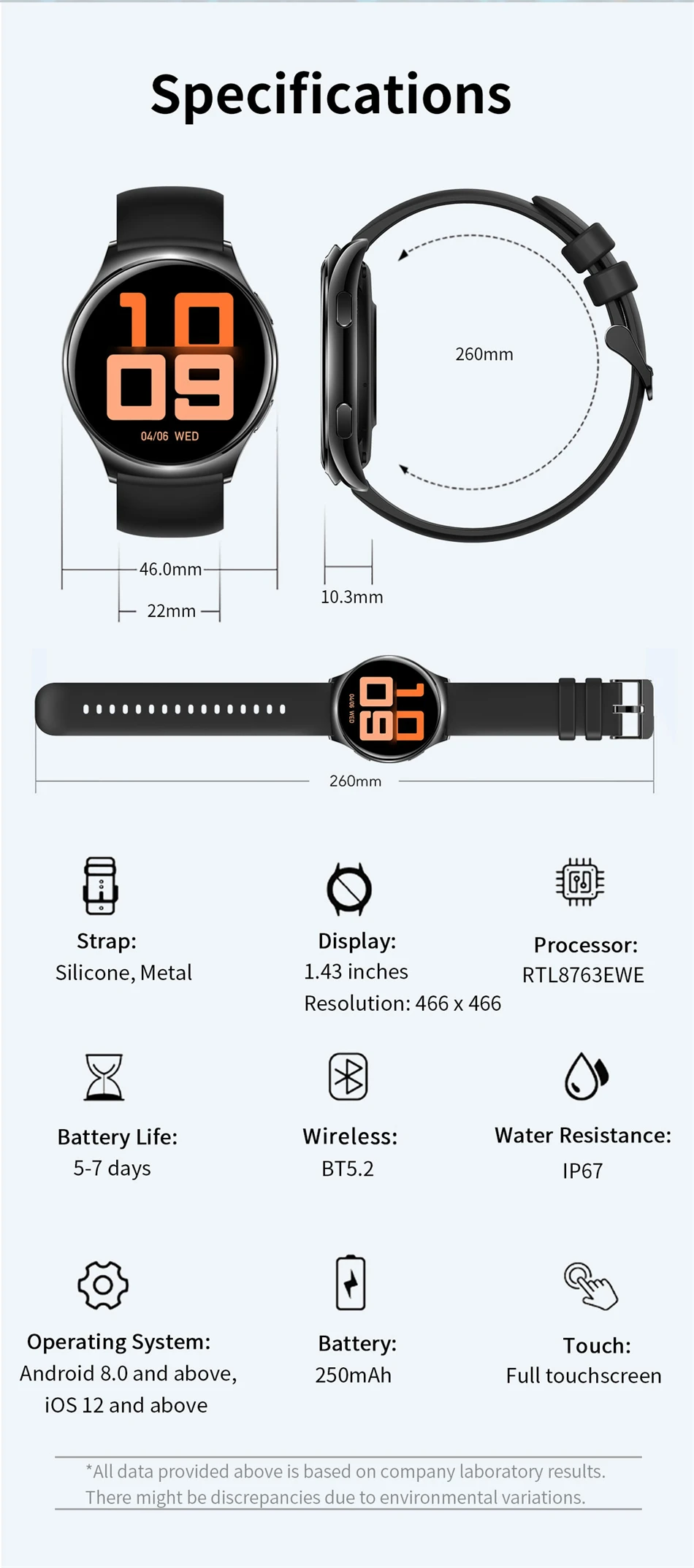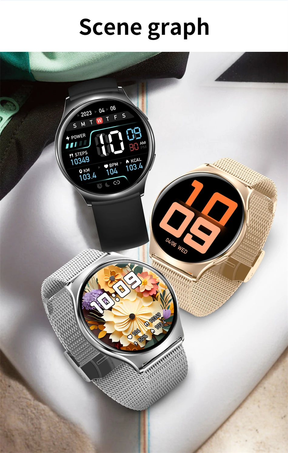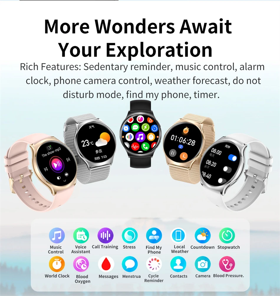 | Funktionen: | Passometer, Fitnesstracker, Schlaftracker, Nachrichtenerinnerung, Anruferinnerung, Anruf annehmen, Anruf wählen, Fernbedienung, Push-Nachricht, 24-Stunden-Anweisung, Chronograph, Alarmuhr, Weltzeit, Permanentkalender, Geschwindigkeitsmessung, Herzfrequenz-Tracker, interaktive Musik, Leuchtende, Thermometer, Kalender, Countdown, Taschenrechner, Oxymeter |