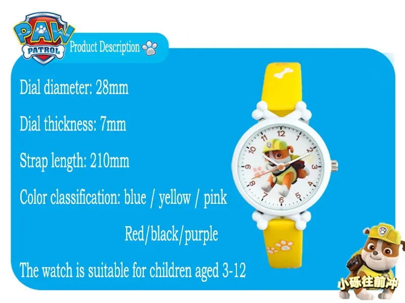 | Farbe / Charakter | Lila/Everest, Pink/Skye, Rot/Marshall, Schwarz/Rocky, Blau/Chase, Gelb/Rubble |